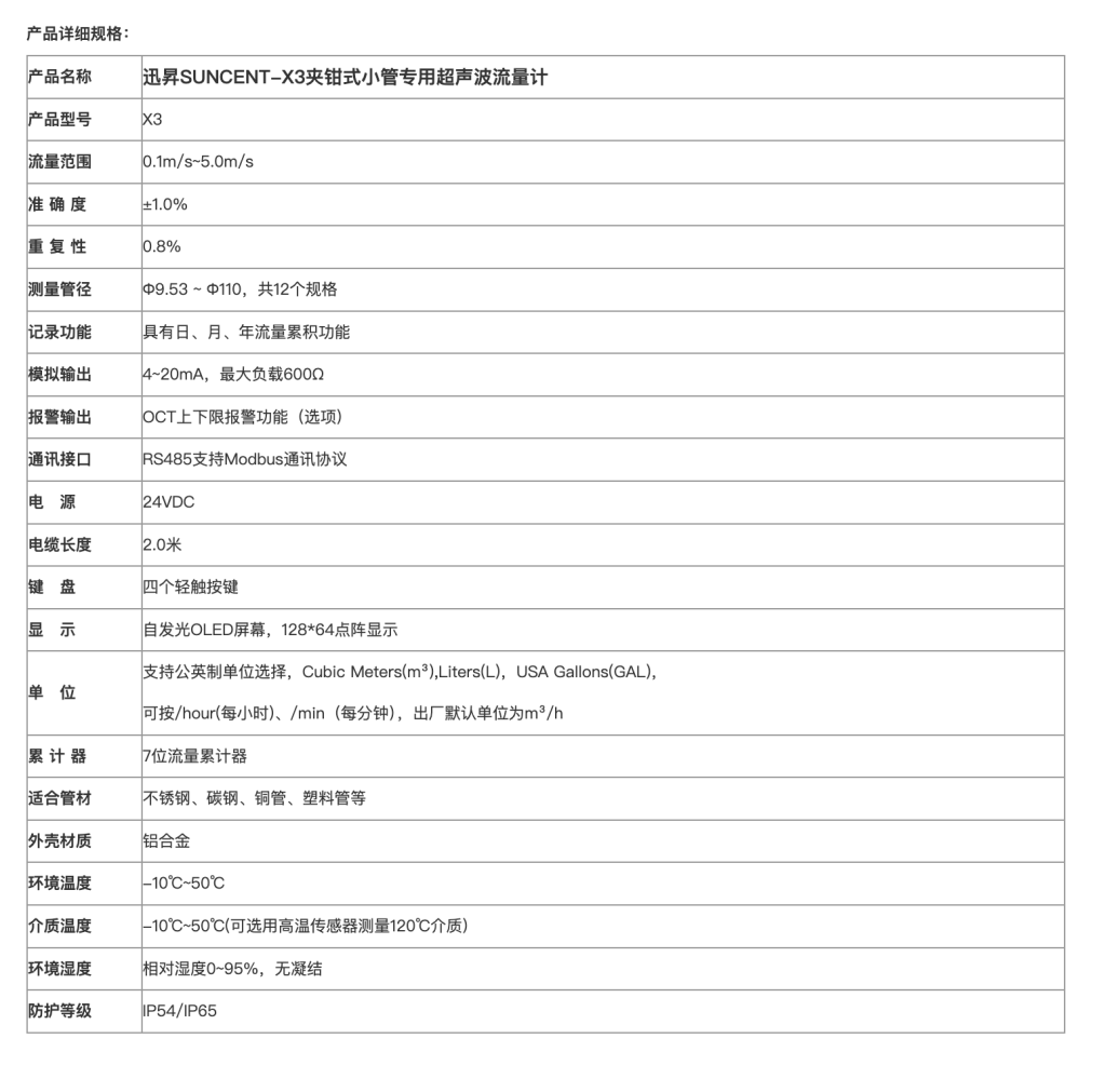 名称: 夹钳式小管专用超声波流量计X3