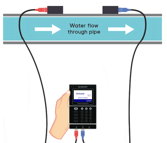 SUNCENT-P8:手持便携式超声波流量计仅需主机和一套传感器就能测量所有管径,当前流速和累积流量都以数字形式显示在主机3.5寸彩色大屏上,设备自带记录数据,可设置时间段记录。